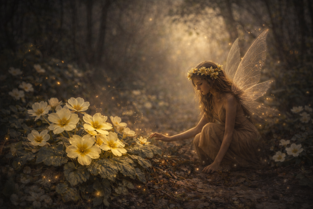 Dans les traditions celtiques et britanniques, la primevère est intimement liée au monde des fées. On racontait que les ronds de primevères pouvaient former des portails vers le royaume féerique et que certains endroits couverts de ces fleurs étaient des lieux de passage entre les mondes visibles et invisibles.